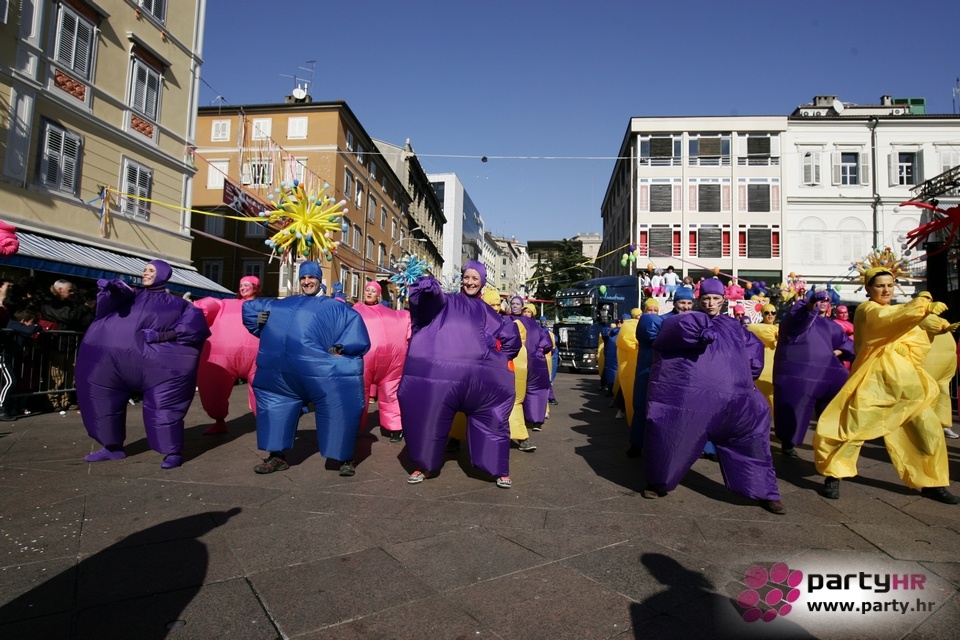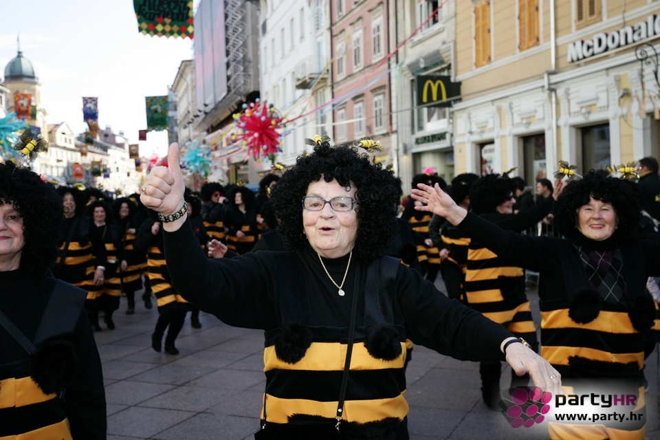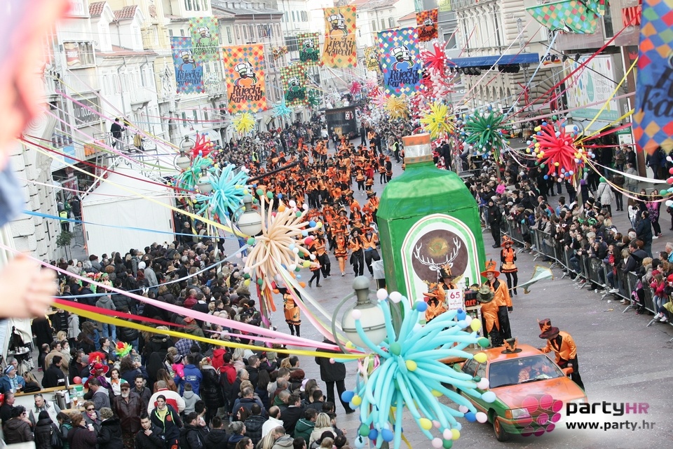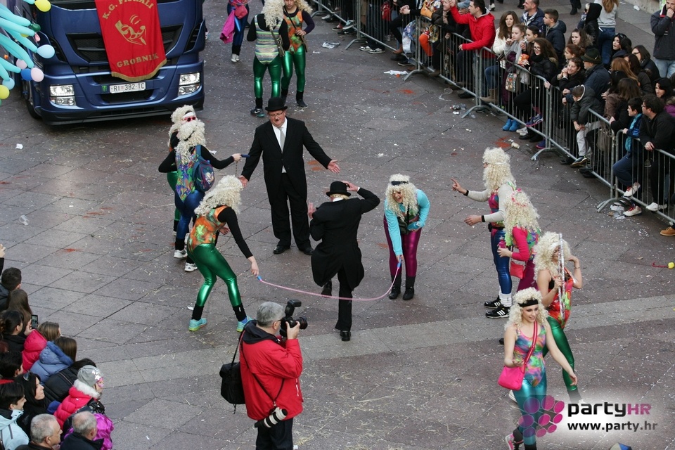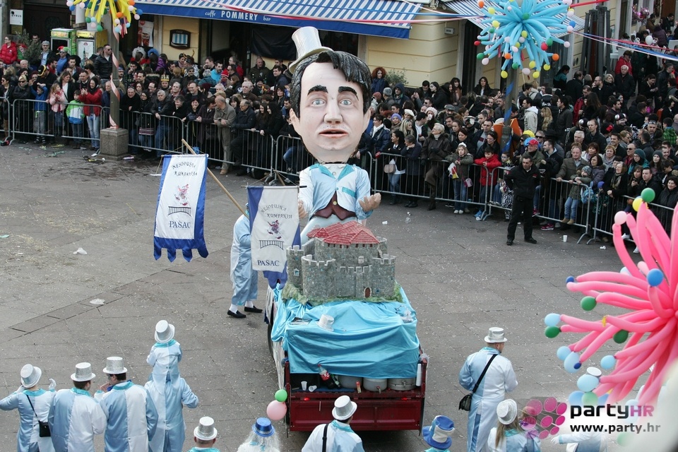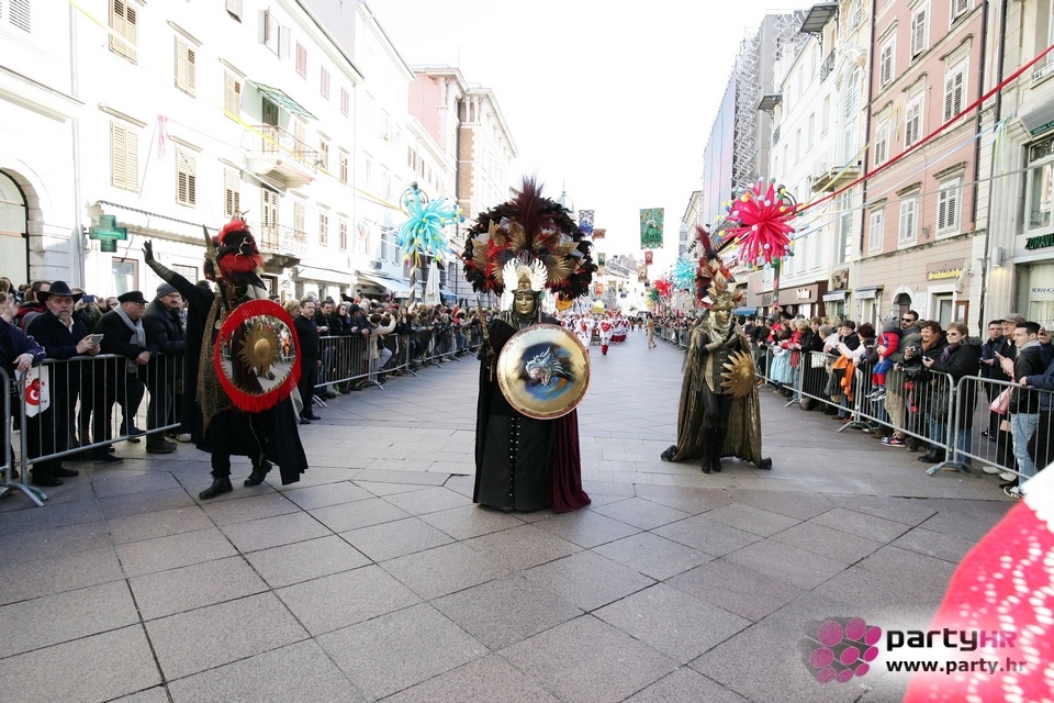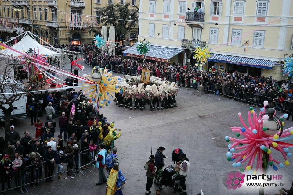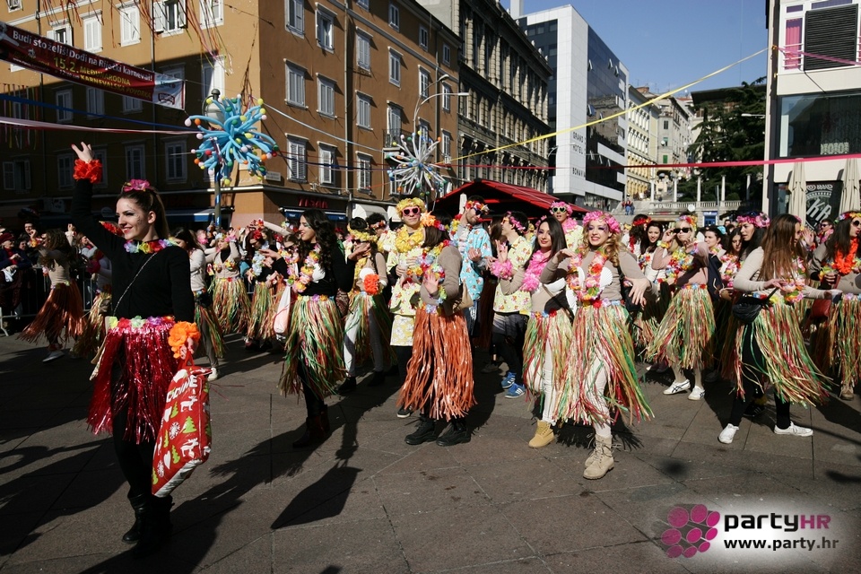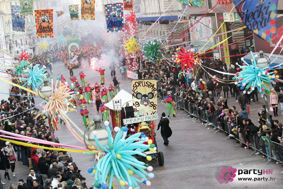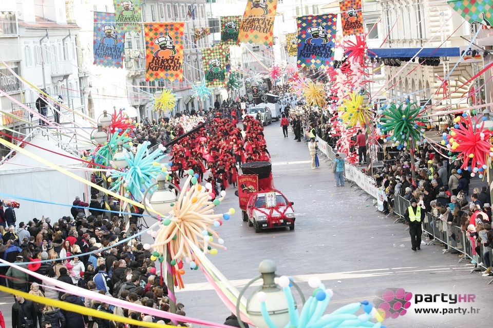 Nepreglednoj povorci od 112 grupa i s oko 10.000 sudionika trebalo je više od 8 sati da prođe cijelom rutom i pokaže se rekordnom broju Riječana i gostiju koji su iskoristili sunčanu nedjelju i spustili se na Korzo doživjeti ovo jedinstveno okupljanje najnevjerojatnijih likova i alegorija iz svakodnevnog života. Moglo se vidjeti zumba-sumo boraca, veselih vrtnih patuljaka, pilića, limuna, kaktusa i rajskih ptica, ovaca, bombona, afričkih plemena i još bezbroj ostalih kreativnih i s ljubavlju izrađenih maski, te čak 80 alegorijskih kola. Na začelju povorke sve je tjerala naprijed jedna od uvijek najatraktivnijih grupa i čuvara maškarane tradicije - Halubajski zvončari. Kad su i oni odzvonili svoj đir po Korzu, odzvonilo je i Pustu koji je u režiji grupe Pom-F-Ri spaljen u ceremoniji na moru.