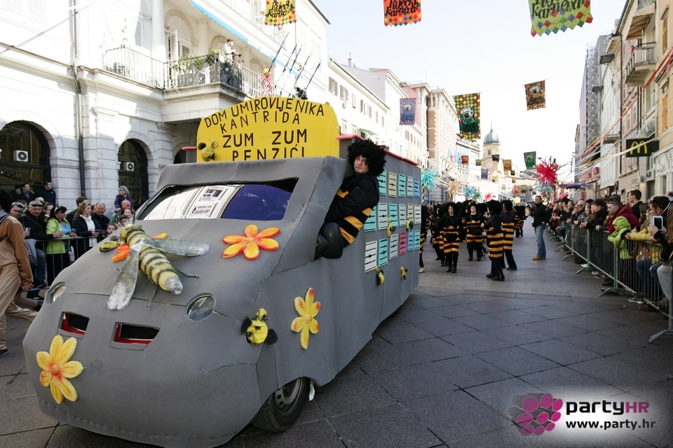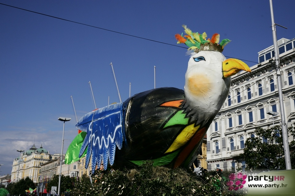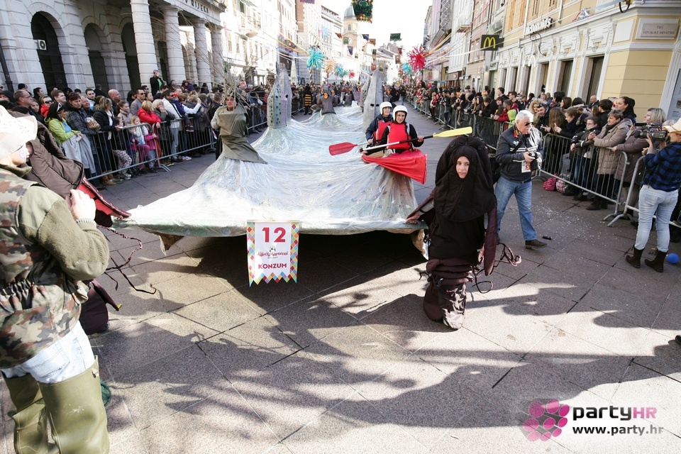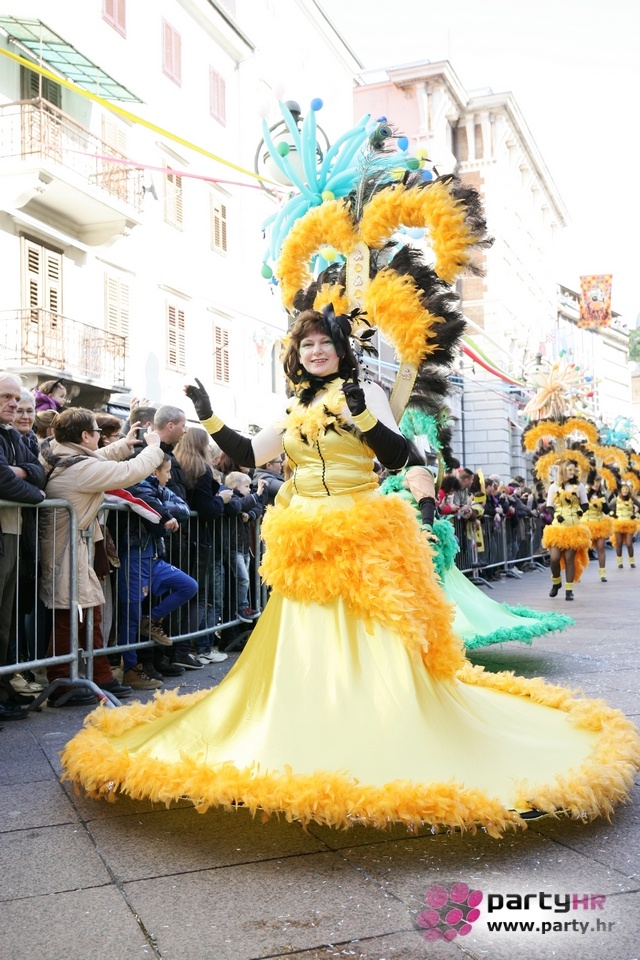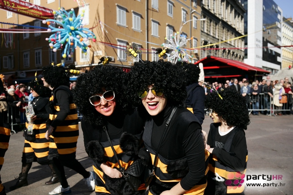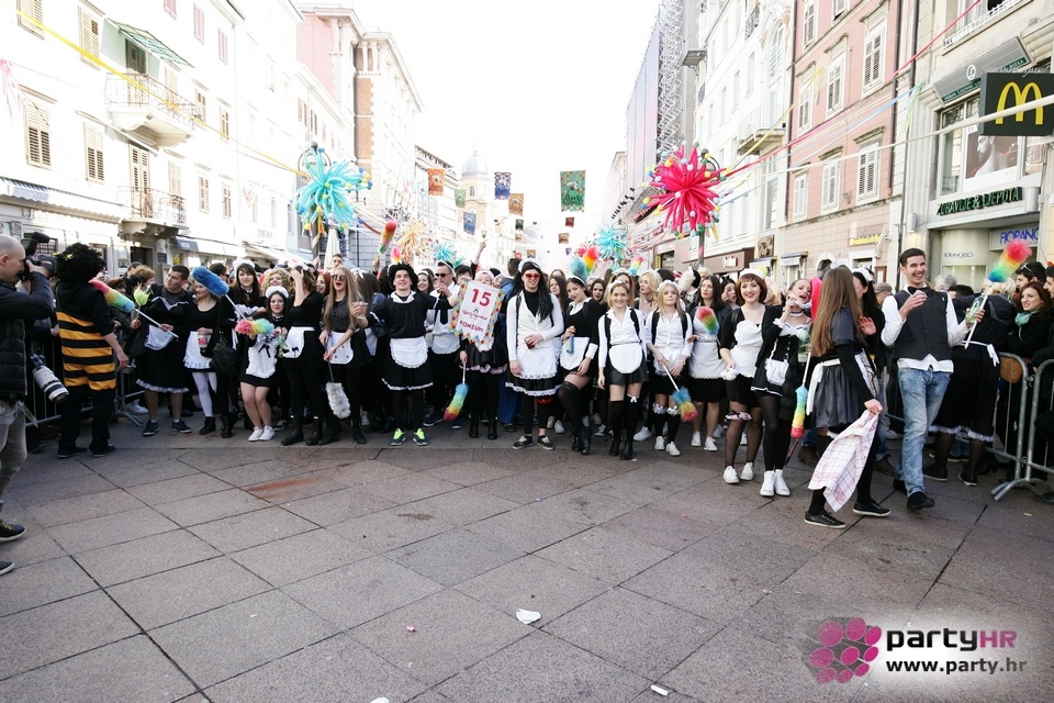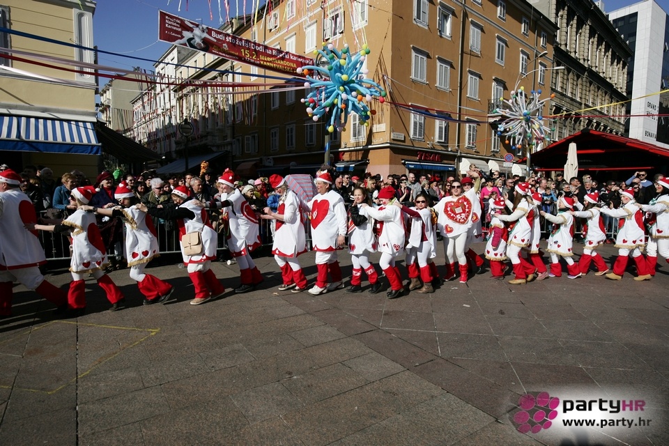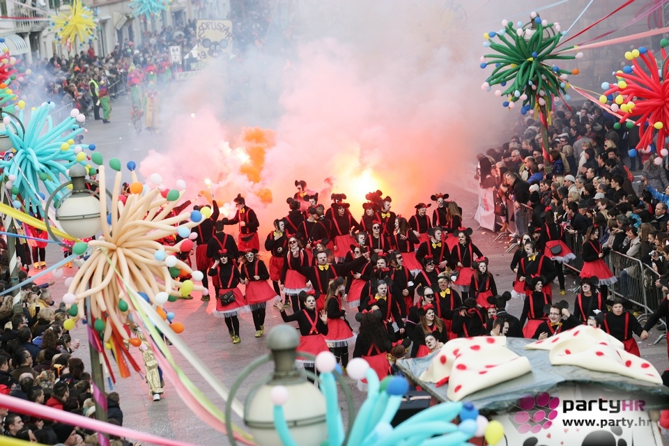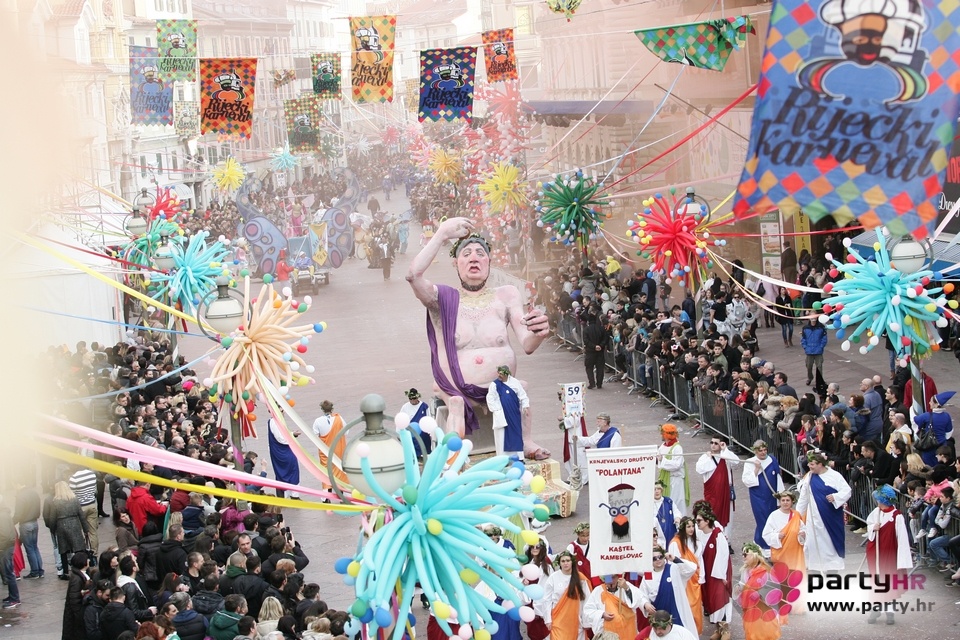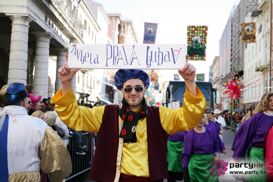 Nepreglednoj povorci od 112 grupa i s oko 10.000 sudionika trebalo je više od 8 sati da prođe cijelom rutom i pokaže se rekordnom broju Riječana i gostiju koji su iskoristili sunčanu nedjelju i spustili se na Korzo doživjeti ovo jedinstveno okupljanje najnevjerojatnijih likova i alegorija iz svakodnevnog života. Moglo se vidjeti zumba-sumo boraca, veselih vrtnih patuljaka, pilića, limuna, kaktusa i rajskih ptica, ovaca, bombona, afričkih plemena i još bezbroj ostalih kreativnih i s ljubavlju izrađenih maski, te čak 80 alegorijskih kola. Na začelju povorke sve je tjerala naprijed jedna od uvijek najatraktivnijih grupa i čuvara maškarane tradicije - Halubajski zvončari. Kad su i oni odzvonili svoj đir po Korzu, odzvonilo je i Pustu koji je u režiji grupe Pom-F-Ri spaljen u ceremoniji na moru.