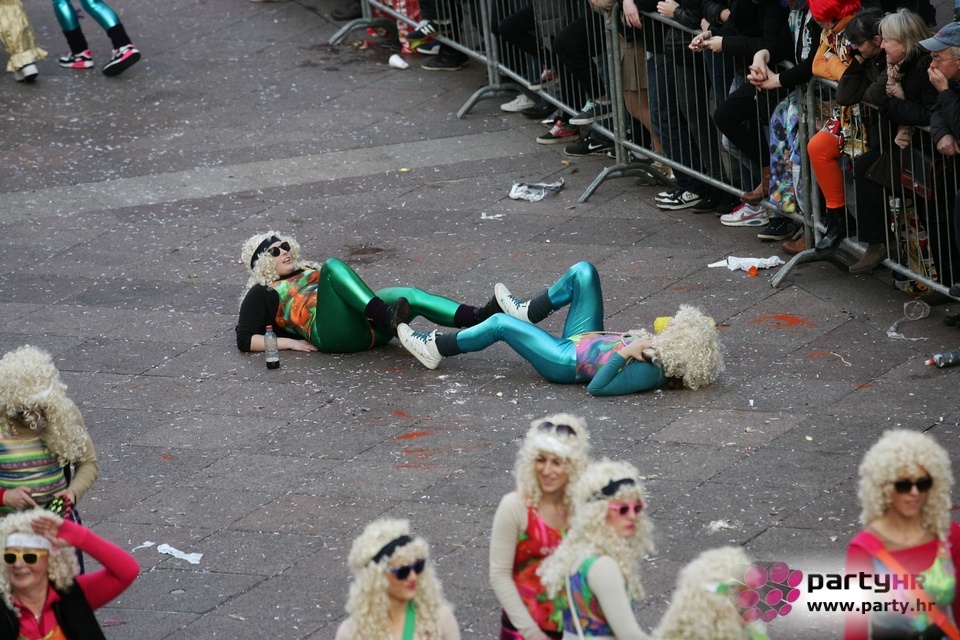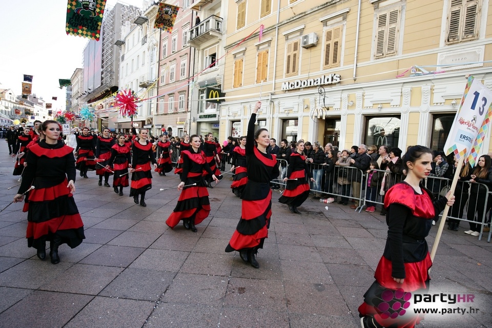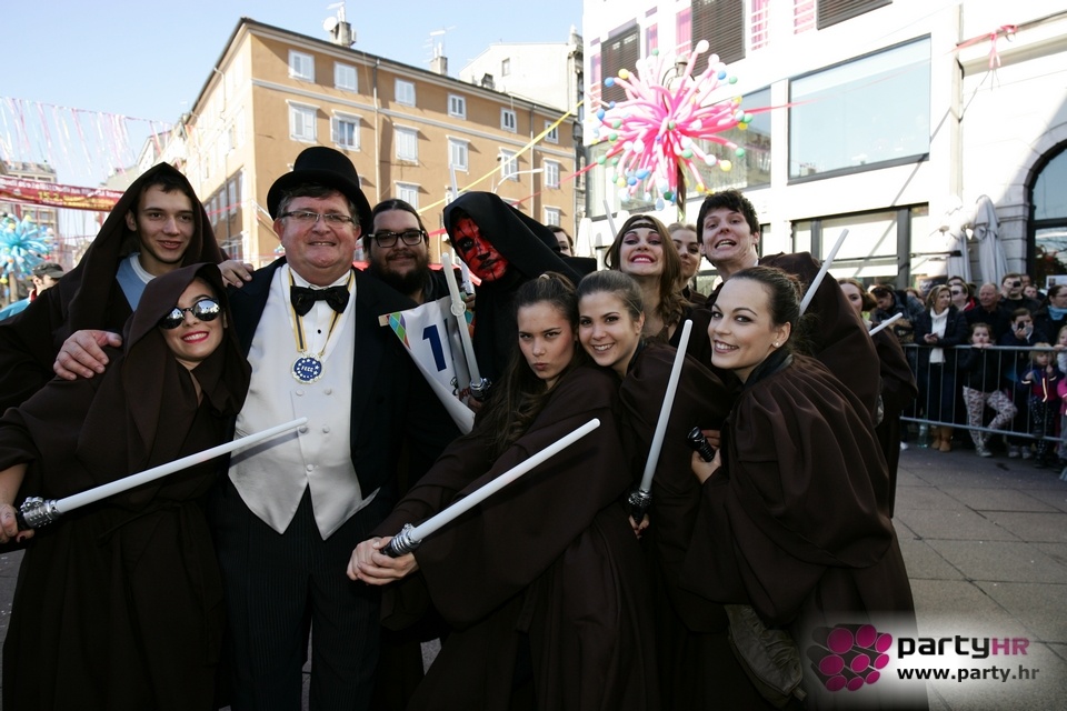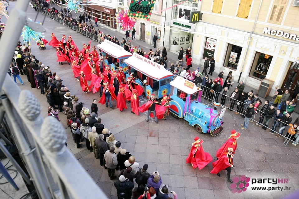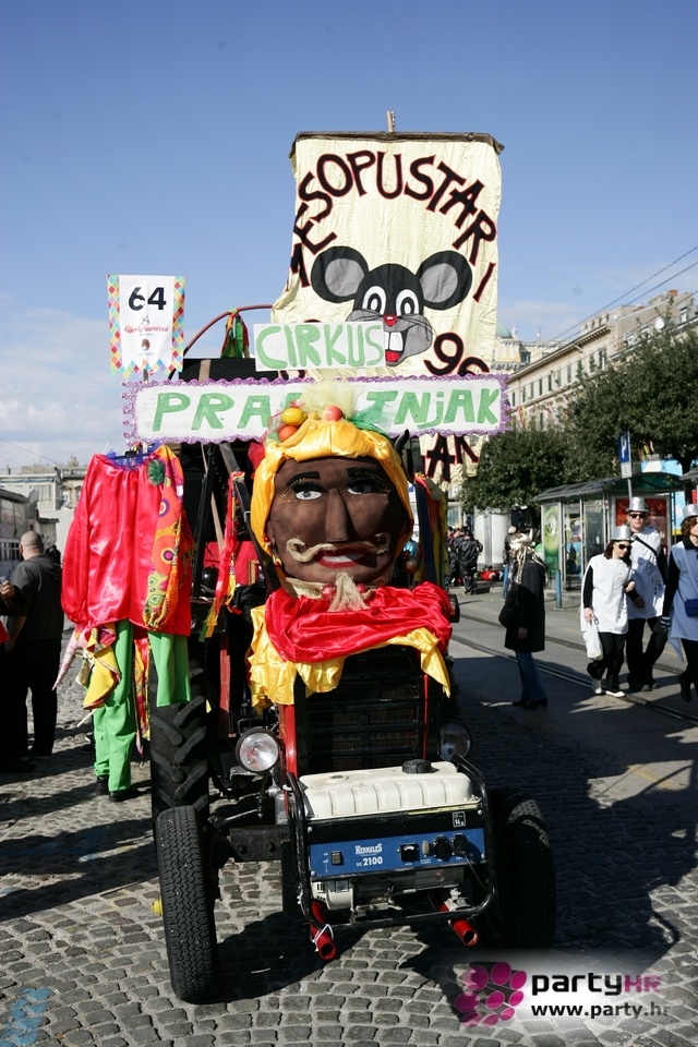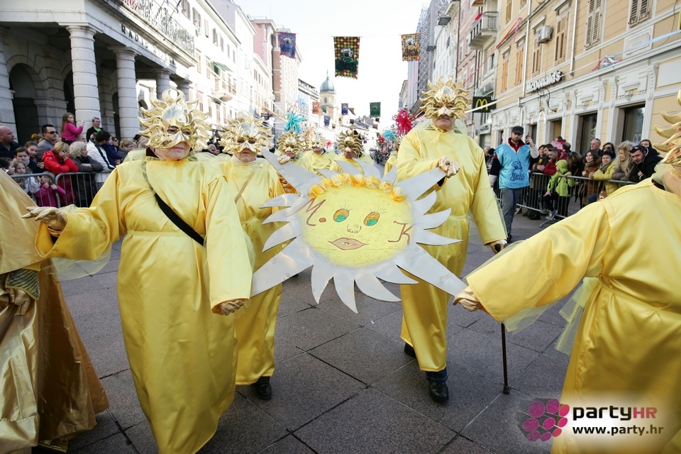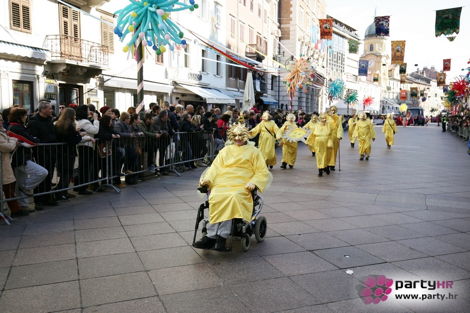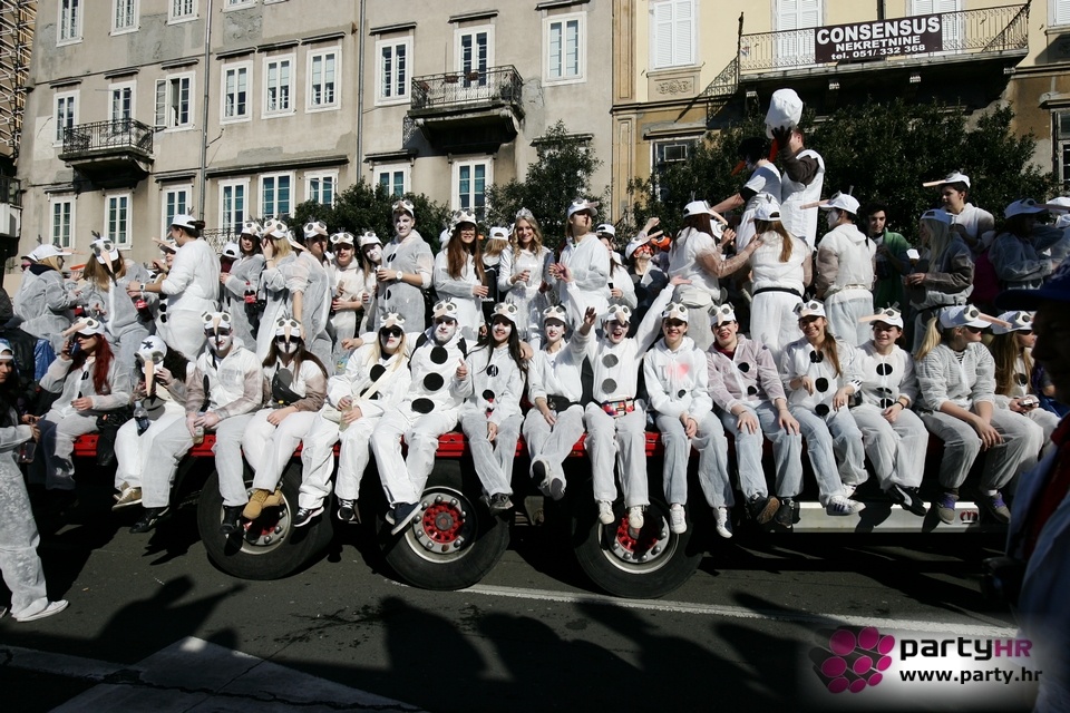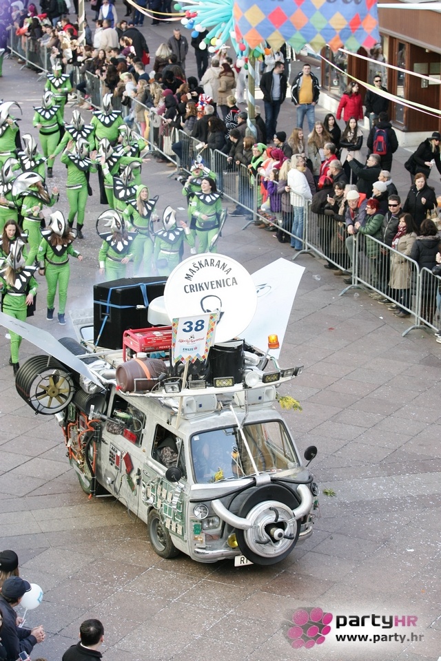 Nepreglednoj povorci od 112 grupa i s oko 10.000 sudionika trebalo je više od 8 sati da prođe cijelom rutom i pokaže se rekordnom broju Riječana i gostiju koji su iskoristili sunčanu nedjelju i spustili se na Korzo doživjeti ovo jedinstveno okupljanje najnevjerojatnijih likova i alegorija iz svakodnevnog života. Moglo se vidjeti zumba-sumo boraca, veselih vrtnih patuljaka, pilića, limuna, kaktusa i rajskih ptica, ovaca, bombona, afričkih plemena i još bezbroj ostalih kreativnih i s ljubavlju izrađenih maski, te čak 80 alegorijskih kola. Na začelju povorke sve je tjerala naprijed jedna od uvijek najatraktivnijih grupa i čuvara maškarane tradicije - Halubajski zvončari. Kad su i oni odzvonili svoj đir po Korzu, odzvonilo je i Pustu koji je u režiji grupe Pom-F-Ri spaljen u ceremoniji na moru.