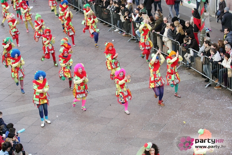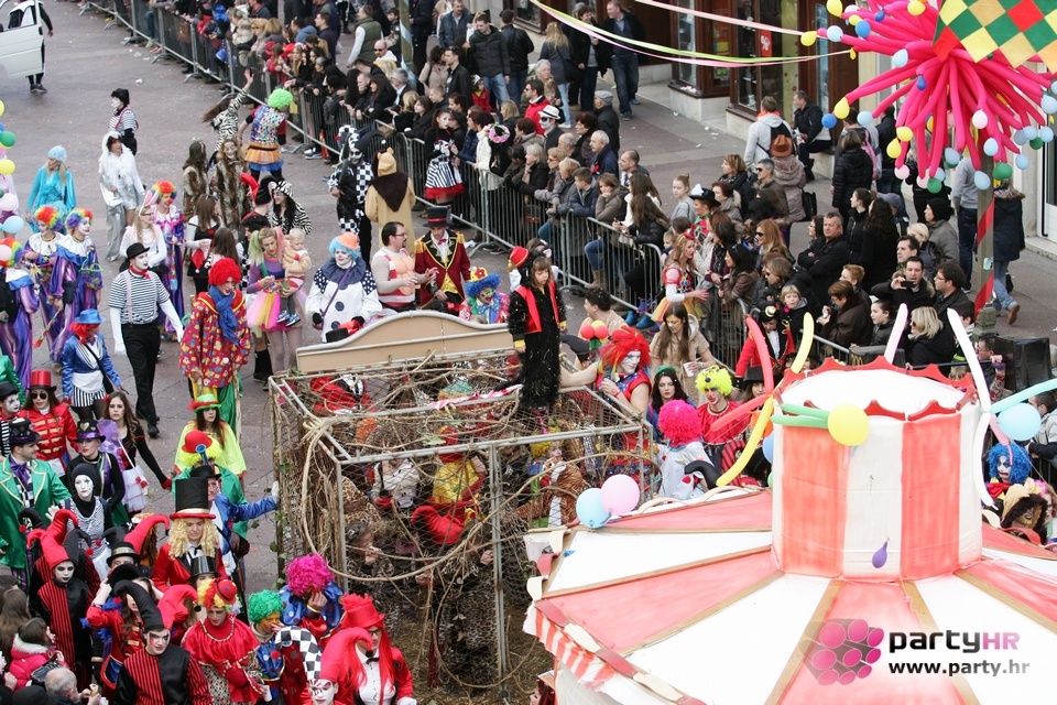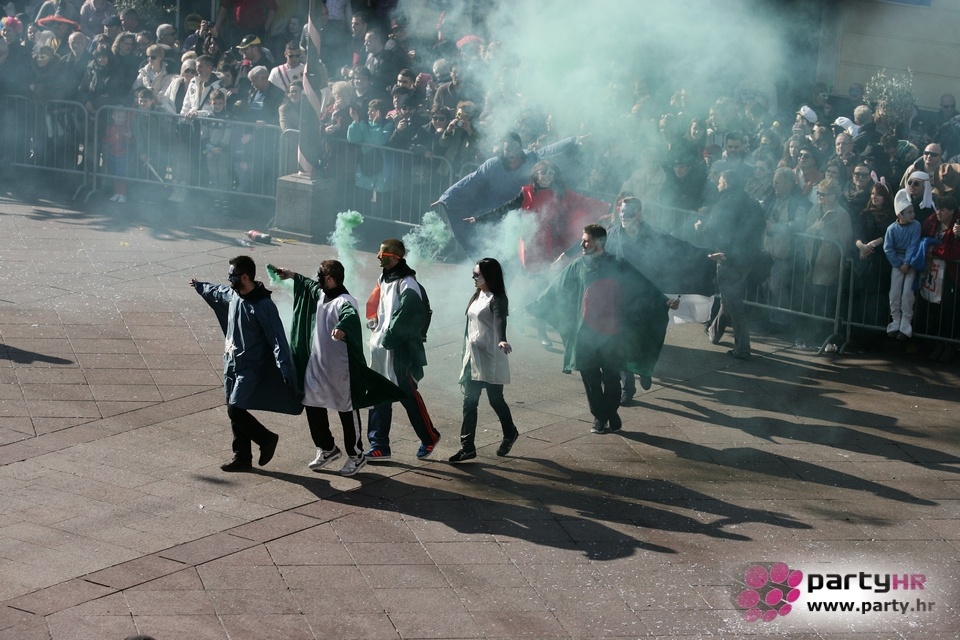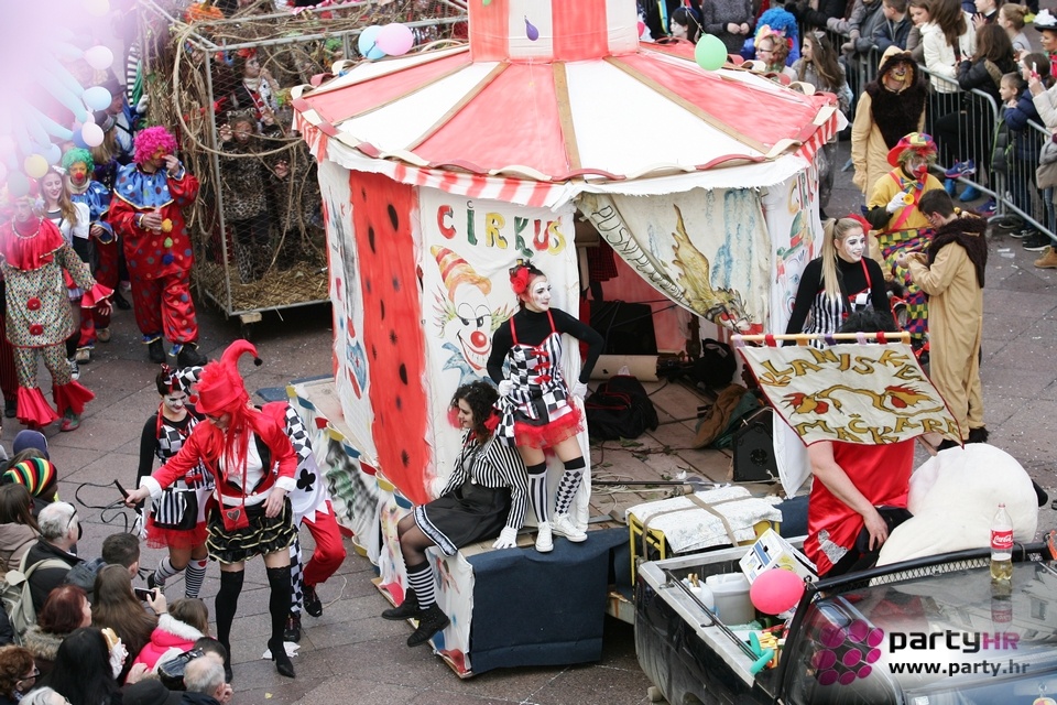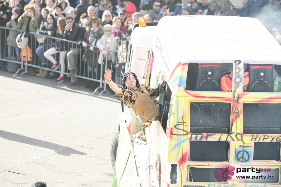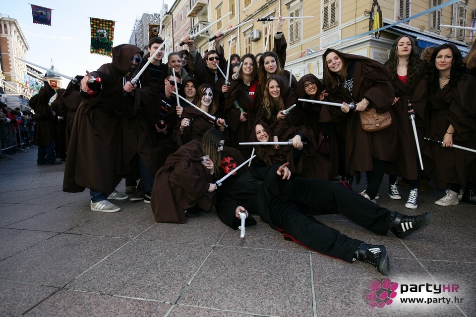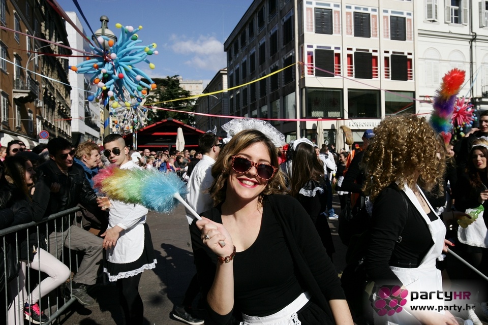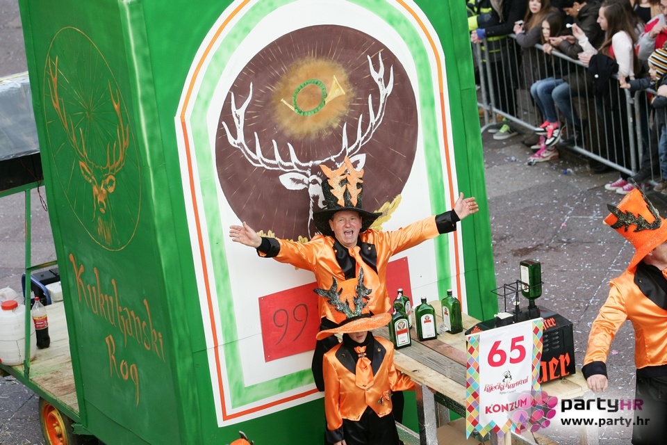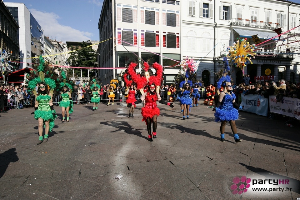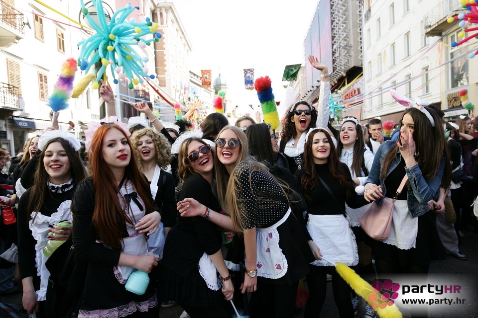 Nepreglednoj povorci od 112 grupa i s oko 10.000 sudionika trebalo je više od 8 sati da prođe cijelom rutom i pokaže se rekordnom broju Riječana i gostiju koji su iskoristili sunčanu nedjelju i spustili se na Korzo doživjeti ovo jedinstveno okupljanje najnevjerojatnijih likova i alegorija iz svakodnevnog života. Moglo se vidjeti zumba-sumo boraca, veselih vrtnih patuljaka, pilića, limuna, kaktusa i rajskih ptica, ovaca, bombona, afričkih plemena i još bezbroj ostalih kreativnih i s ljubavlju izrađenih maski, te čak 80 alegorijskih kola. Na začelju povorke sve je tjerala naprijed jedna od uvijek najatraktivnijih grupa i čuvara maškarane tradicije - Halubajski zvončari. Kad su i oni odzvonili svoj đir po Korzu, odzvonilo je i Pustu koji je u režiji grupe Pom-F-Ri spaljen u ceremoniji na moru.