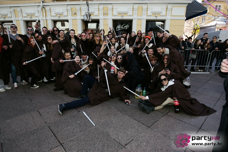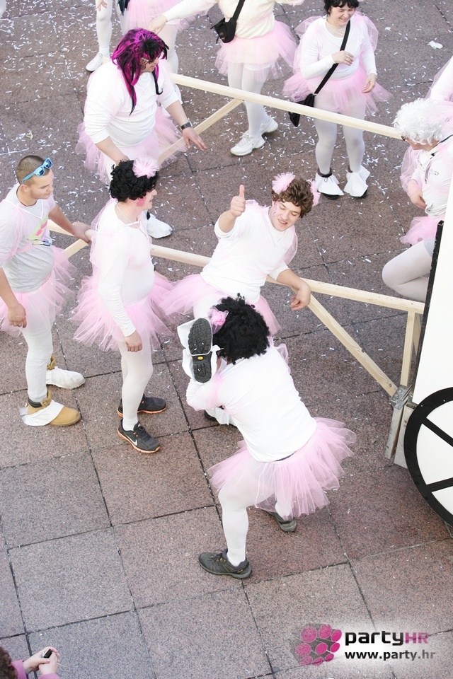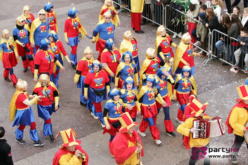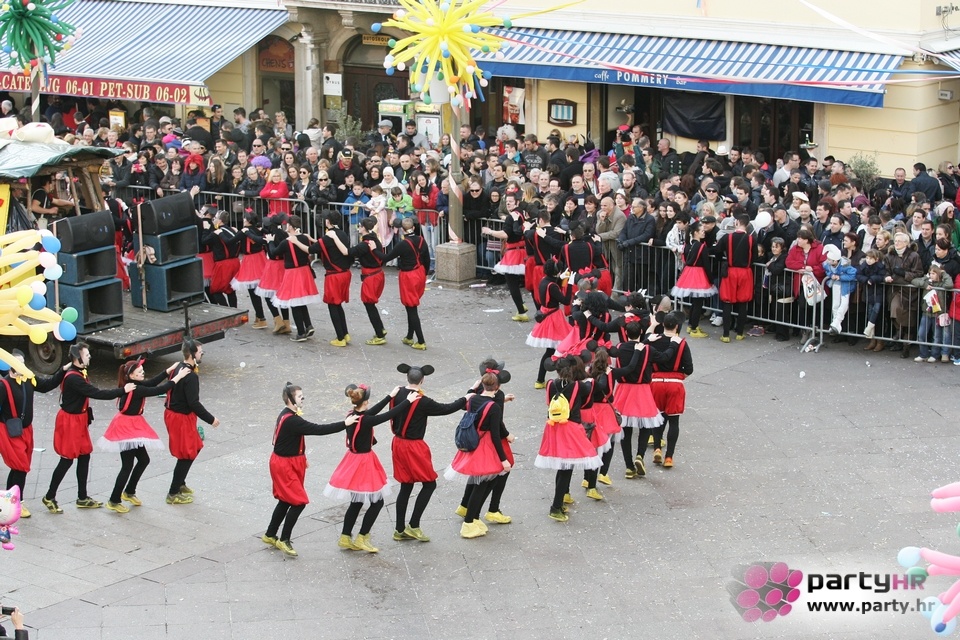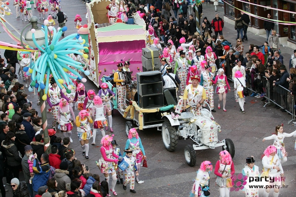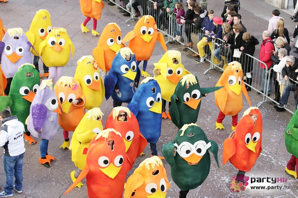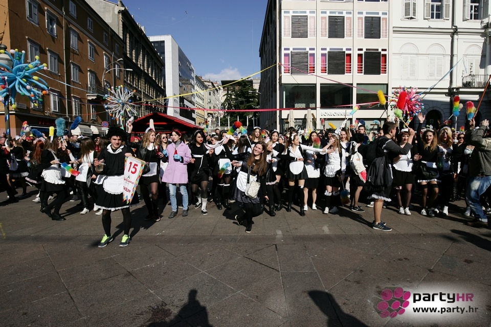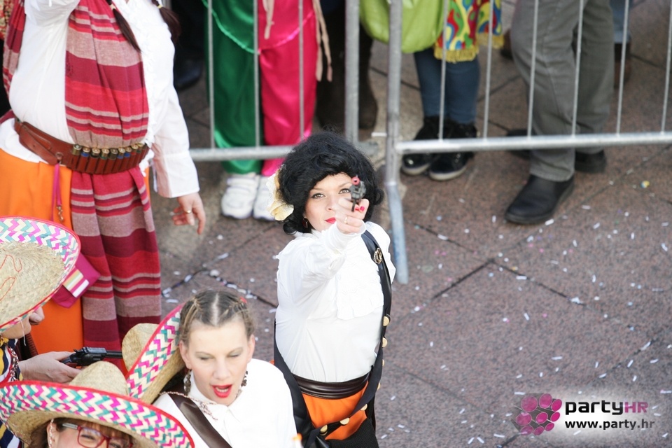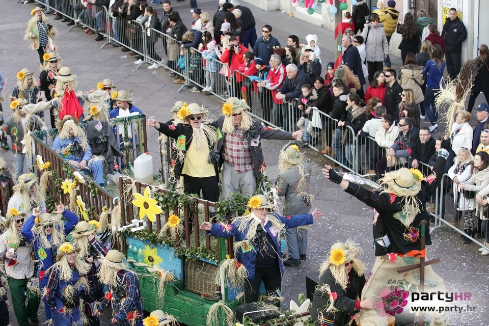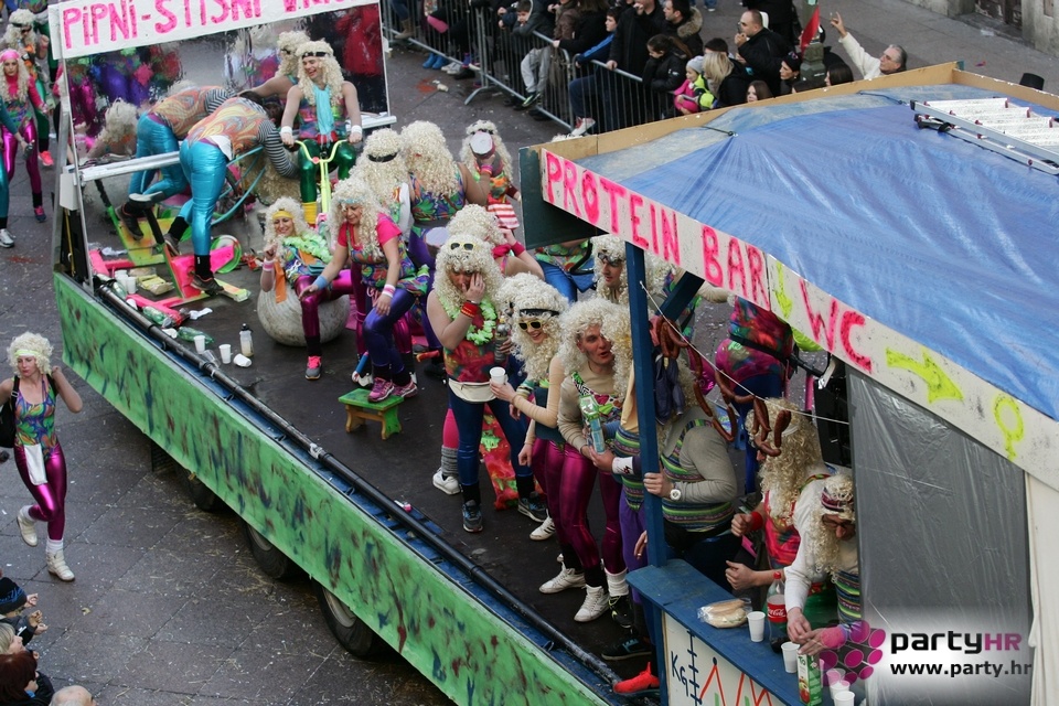 Nepreglednoj povorci od 112 grupa i s oko 10.000 sudionika trebalo je više od 8 sati da prođe cijelom rutom i pokaže se rekordnom broju Riječana i gostiju koji su iskoristili sunčanu nedjelju i spustili se na Korzo doživjeti ovo jedinstveno okupljanje najnevjerojatnijih likova i alegorija iz svakodnevnog života. Moglo se vidjeti zumba-sumo boraca, veselih vrtnih patuljaka, pilića, limuna, kaktusa i rajskih ptica, ovaca, bombona, afričkih plemena i još bezbroj ostalih kreativnih i s ljubavlju izrađenih maski, te čak 80 alegorijskih kola. Na začelju povorke sve je tjerala naprijed jedna od uvijek najatraktivnijih grupa i čuvara maškarane tradicije - Halubajski zvončari. Kad su i oni odzvonili svoj đir po Korzu, odzvonilo je i Pustu koji je u režiji grupe Pom-F-Ri spaljen u ceremoniji na moru.