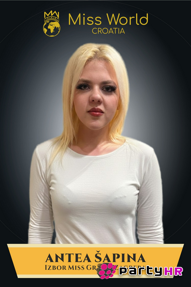 Antea Šapina ima 23 godine, dolazi iz Velike Gorice. Nakon završene Škole primijenjene umjetnosti i dizajna, smjer dizajner unutrašnje arhitekture, put ju je odveo na studij javne uprave pri Pravnom fakultetu u Zagrebu. Kroz studij nastoji razumjeti funkcioniranje društvenih sustava i potrebe građana, no njezina najveća strast ostaje gluma, kojoj se planira posvetiti u budućnosti. Slobodno vrijeme provodi u teretani i crtajući, a aktivno se služi engleskim jezikom uz učenje španjolskog i talijanskog. Humanitarni rad joj nije stran; volontirala je na modnim revijama za pomoć djeci, čvrsto vjerujući da svaka pojava može i treba imati višu svrhu. Prijatelji je opisuju kao upornu i snalažljivu osobu spremnu pomoći onima kojima je to potrebno. Kao svoju najveću životnu pobjedu i prepreku koja ju je osnažila, Antea ističe gubitak 45 kilograma. Taj put transformacije naučio ju je disciplini i samopoštovanju te ju motivirao da danas bude inspiracija drugim djevojkama. Njezin životni moto je jednostavan, ali moćan: nikada ne odustaj od svojih snova i uvijek budi dobra osoba. Sudjelovanjem na izboru za Miss želi pokazati da se trudom i upornošću može postati najbolja verzija sebe.