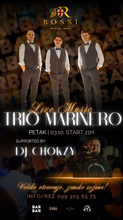 Večer će dodatno obogatiti nastup uživo grupe Trio Marinero, koja će svojim prepoznatljivim repertoarom unijeti posebnu čar i pretvoriti otvorenje u pravi glazbeni doživljaj. Smijeh, ples i vesela atmosfera zajamčeni su od prvog do posljednjeg takta.